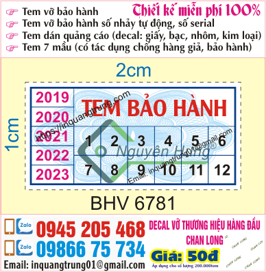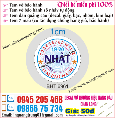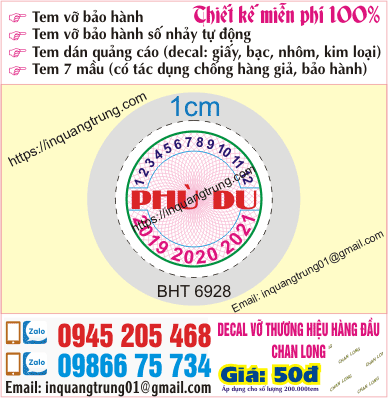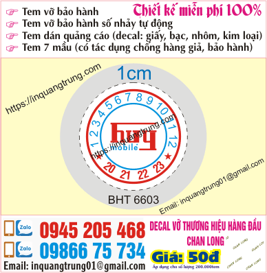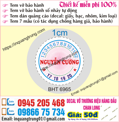 In tem bảo hành tròn với giá 50đ, dựng mẫu rất đẹp và hoàn toàn miễn phí