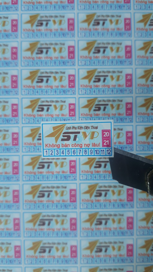 Tem vỡ bảo hành luôn được hoàn thiện, thành phẩm cắt bế tạo hình đứt nửa, dễ dàng bóc ra gắn lên hàng hóa