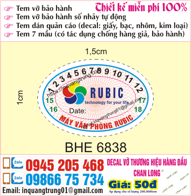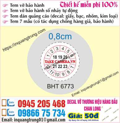 - + Kích thước tem bảo hành lớn thì giá cáo, kích thước nhỏ giá thấp