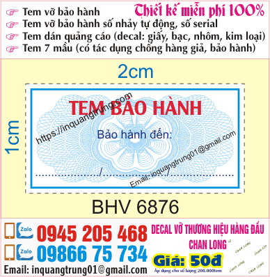 IN TEM BẢO HÀNH TẠI THÀNH PHỐ SÔNG CÔNG, THIẾT KẾ MIỄN PHÍ, GIAO TẬN NHÀ, GIÁ CHỈ TỪ 50Đ/CÁI