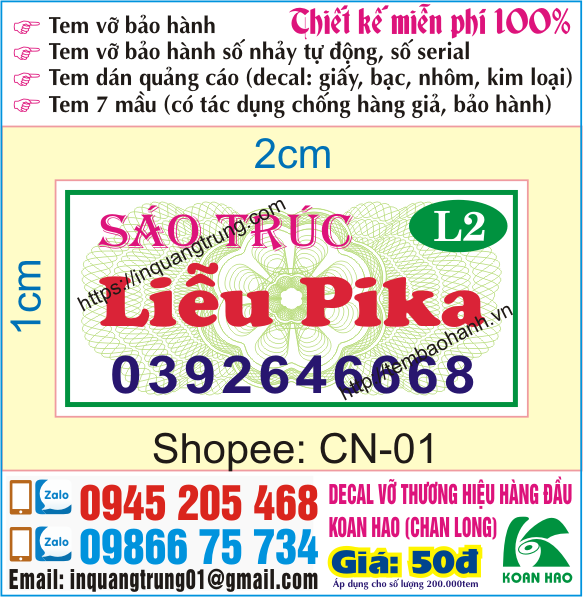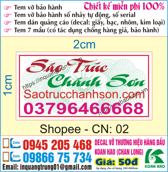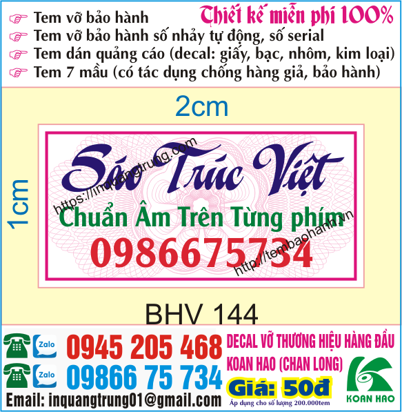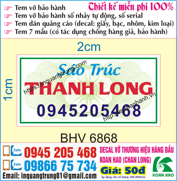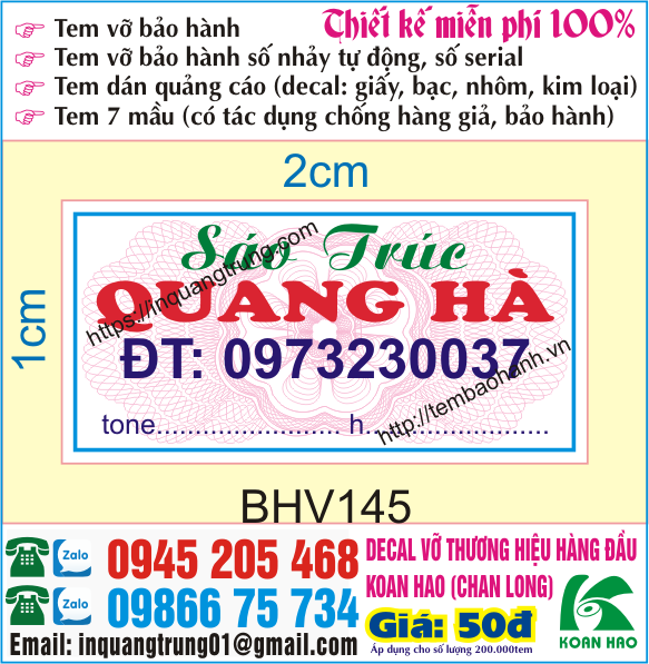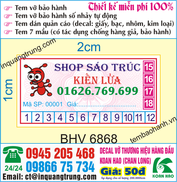 - + Tư vấn và thiết kế mẫu tem bảo hành hoàn toàn miễn phí (Free 100%)