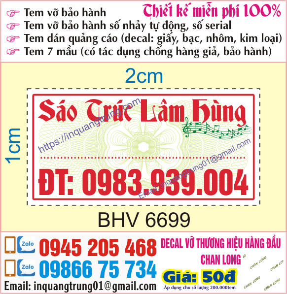 7. Bẩy là: Thiết kế mẫu nhãn bể 50đ chất lượng cao miễn phí hoàn toàn, sell file mẫu cho quý khách sửa chữa and duyệt mẫu trước khi in chính thức (khộng cộng vào giá tem).