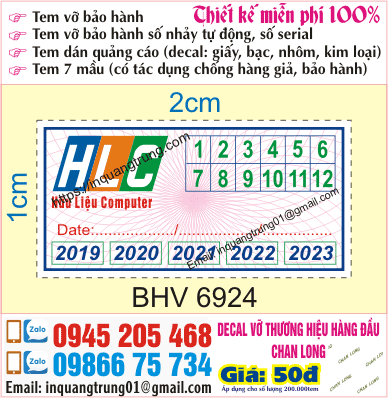 • Mẫu tem bảo hành số nhảy được chúng tôi thiết kế miễn phí 100%.