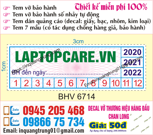IN TEM BẢO HÀNH TẠI BẮC NINH, THIẾT KẾ MIỄN PHÍ, GIÁ CHỈ TỪ 50Đ/CÁI