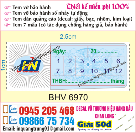 - Tem bảo hành được dán trên bề mặt của sản phẩm có tác dụng xác định thời hạn bảo hành. Ngoài ra còn có tác dụng chống hàng giả, bảo vệ thương hiệu sản phẩm hàng hóa.