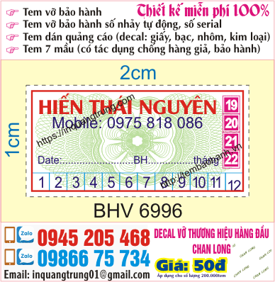 Chủng loại tem: Nhãn decal bảo hành chất lượng cao, với mức giá cả rất chi là rẻ ở In Quang Trung, mức giá chỉ từ 50đ/cái tem.