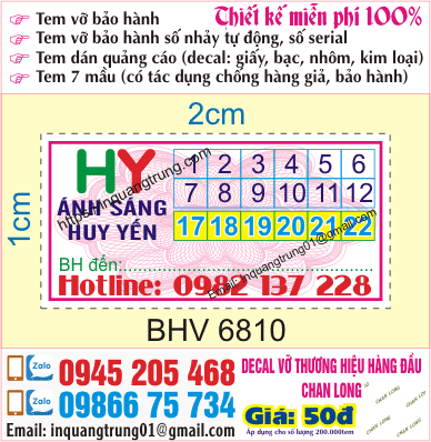 Dịch vụ in tem vỡ số nhảy, in tem bảo hành số nhảy (số seri) chất lượng cao – giá 50đ.